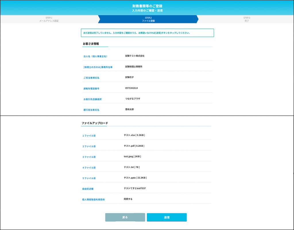 ⑦ 入力内容を確認し、間違いなければ「送信」ボタンをクリックします。