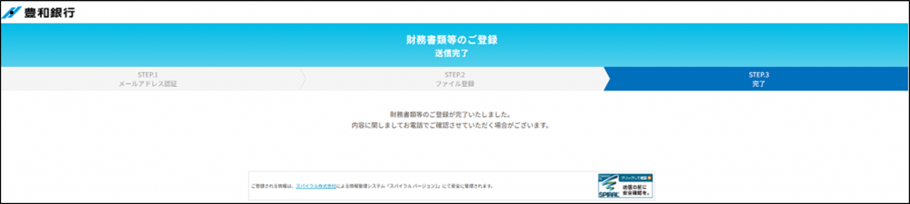 ④ 下記画面になれば豊和銀行からメールが自動送信されます。(本画面は閉じて結構です)